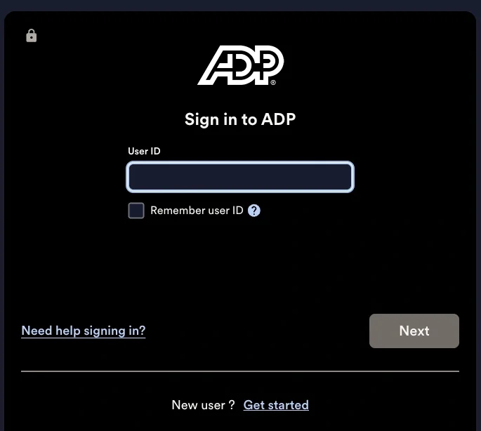Note: ADP occasionally updates the visual design of the login pagBegin by finding the authentic ADP login page.